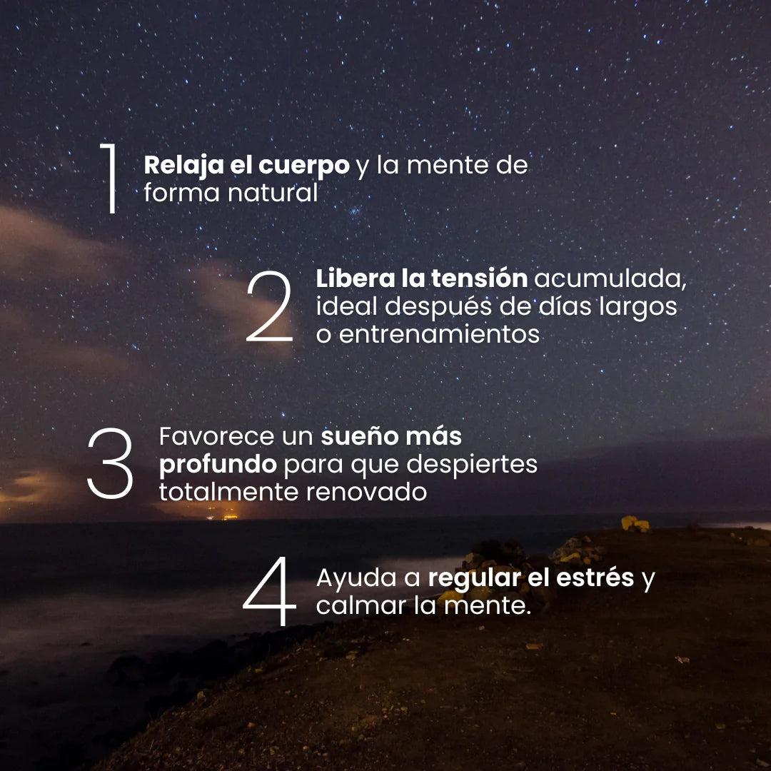 Ideal para personas con tension, estres, mala calidad de sueno o alta exigencia fisica y mental.