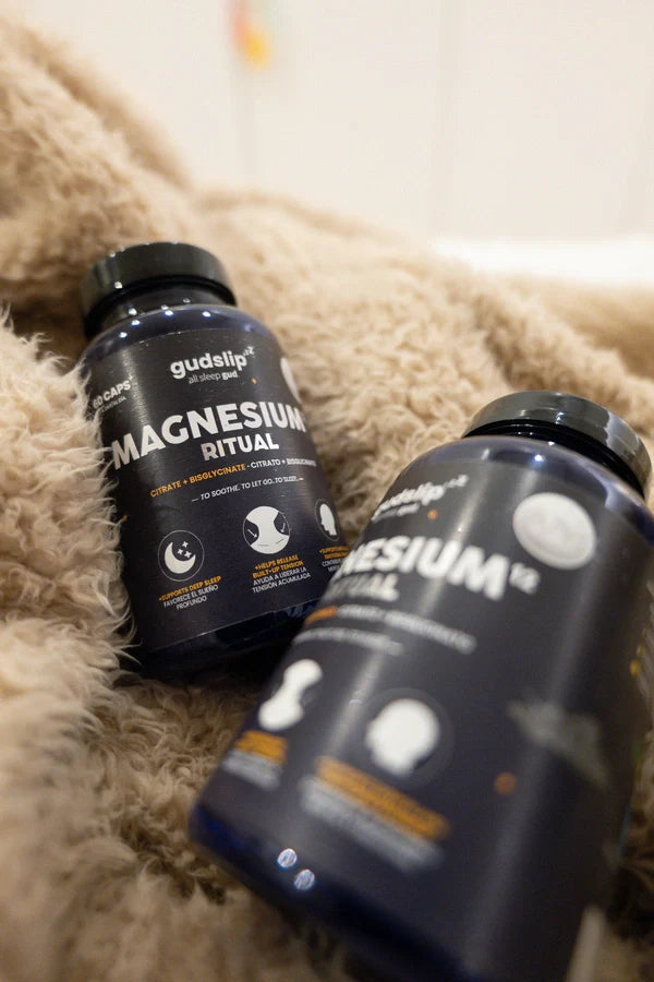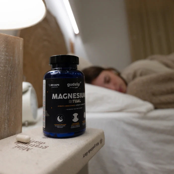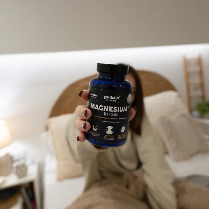 Magnesio⁺ Ritual combina citrato de magnesio y bisglicinato, dos formas altamente asimilables que son suaves para el estómago y efectivas para apoyar el sueño, la relajación y el equilibrio del sistema nervioso.